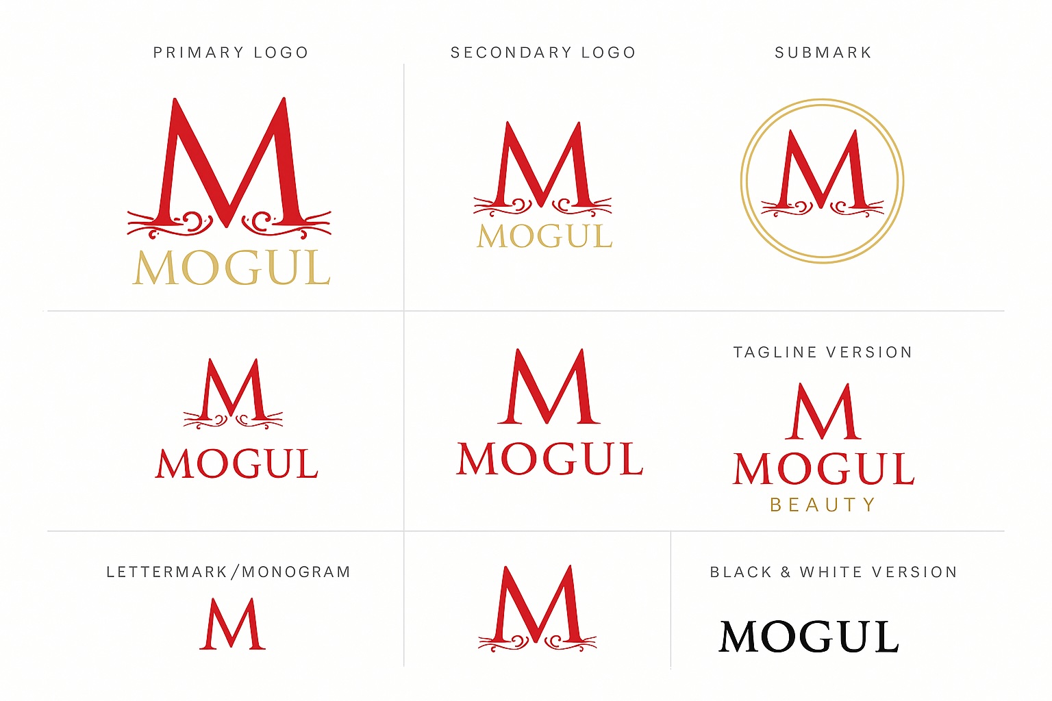 When Mogul Beauty approached us, they already had a primary logo in place. Instead of starting from scratch, our role was to build upon their existing brand mark by expanding the visual system around it. We focused on creating complementary logo variations- including alternate layouts, submarks, and responsive formats-that would maintain brand consistency across all platforms and packaging.
